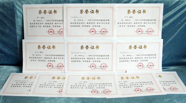 获得“国家奖学金荣誉证书”的部分同学
