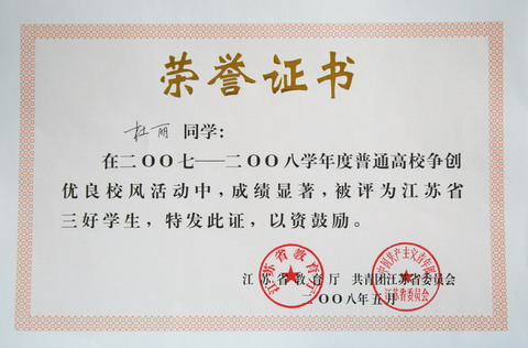 2008年江苏省三好学生、优秀学生干部