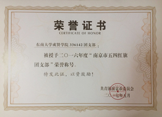 2017.6,开云336142团支部荣获“南京市五四红旗团支部”荣誉称号