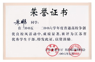 江苏省三好学生、优秀学生干部