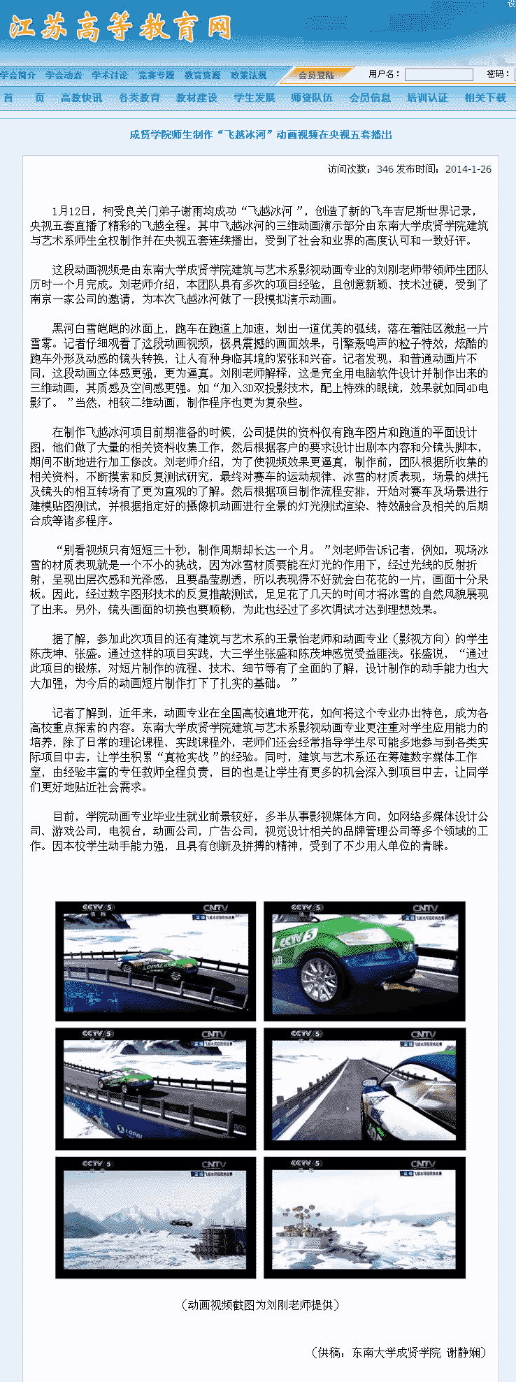 【江苏高等教育网】央视“飞越冰河”动画演示 原来出自东大成贤学院之手