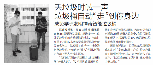 【江南时报】丢垃圾时喊一声 垃圾桶自动“走”到你身边