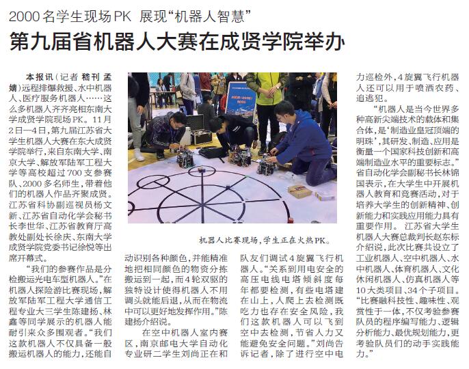 【江苏科技报】第九届省机器人大赛在成贤学院举办