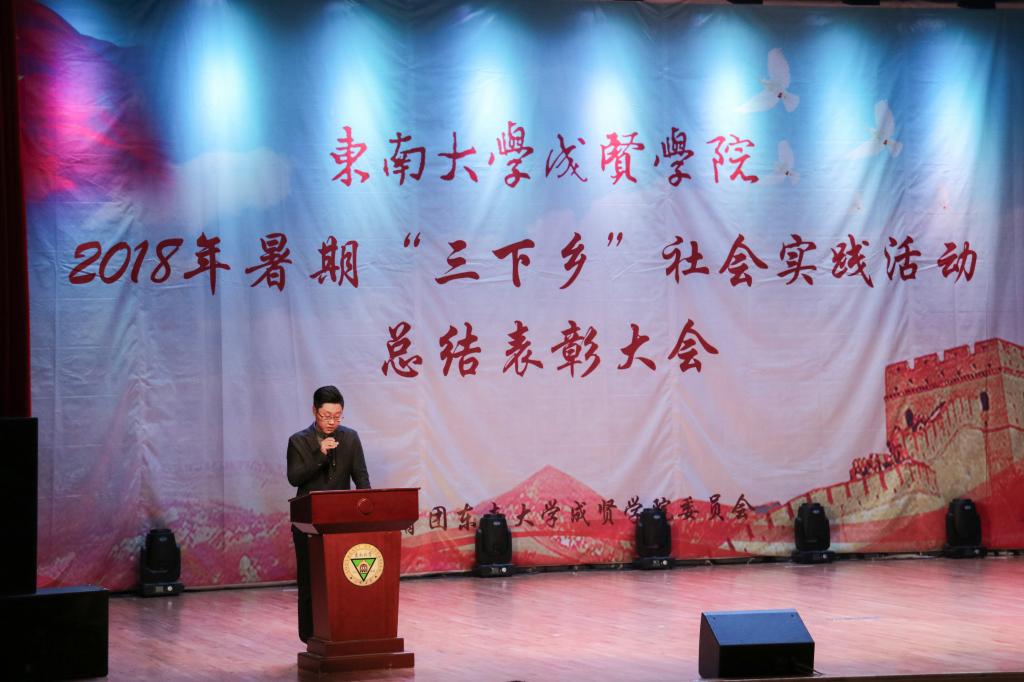 11月20日晚,由校团委主办、志愿者工作部承办的2018年暑期“三下乡”社会实践活动总结表彰大会在综合楼报告厅313举行。学生处处长唐小平老师、校团委书记潘明烽老师、学生处副处长苏力老师以及各院分团委书记和各优秀团队的指导老师们、成员代表及2018级团支部代表近500人参加了大会。