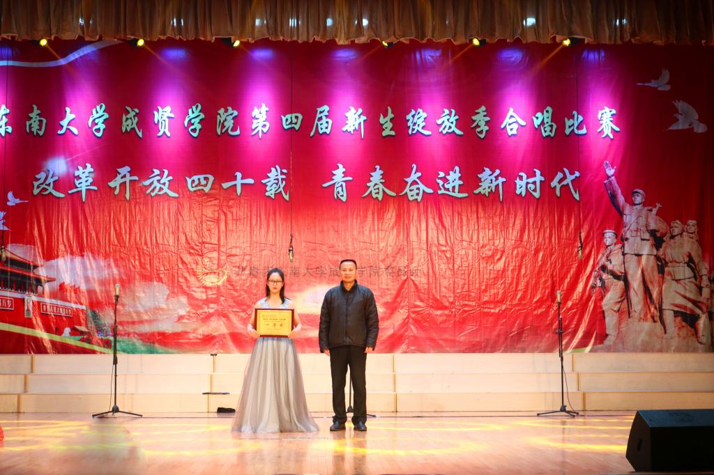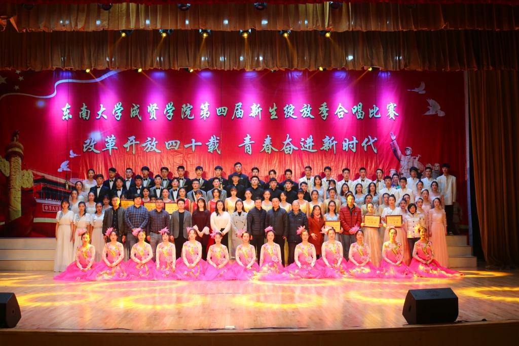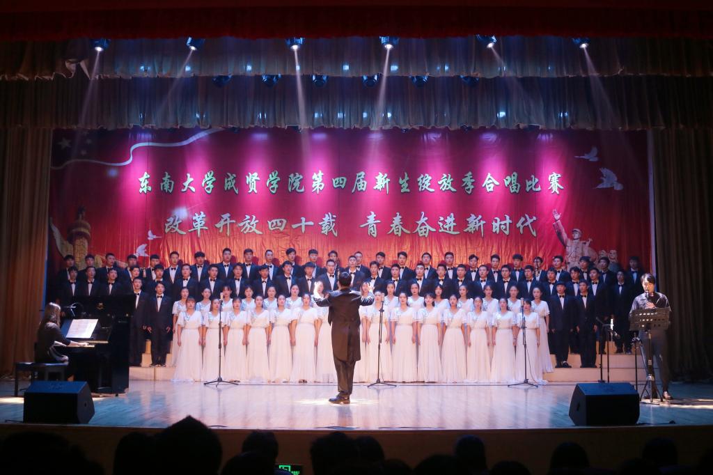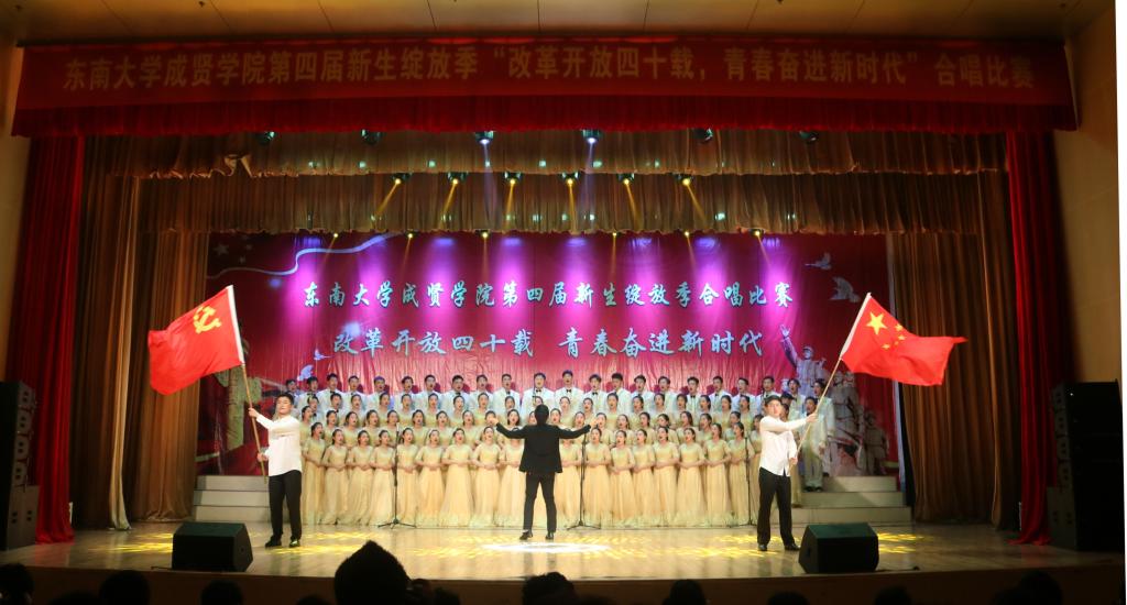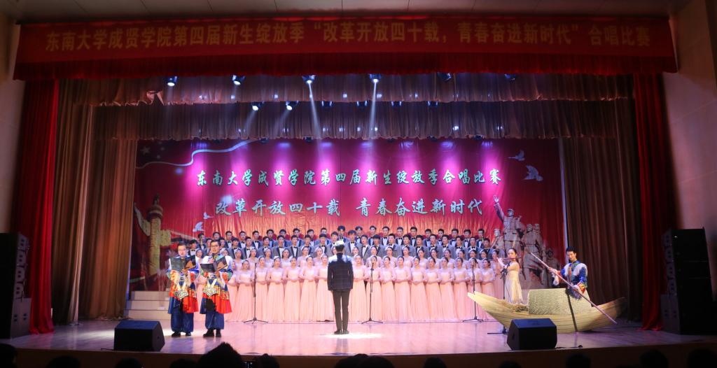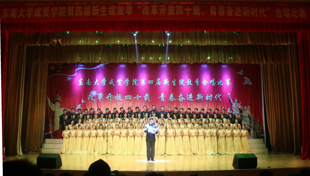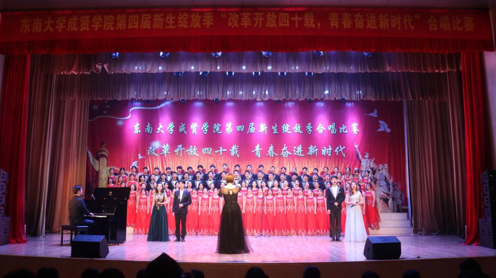 比赛中,大学生艺术指导中心音乐团倾情演绎歌曲《望春风》,展现了经典民谣的优美旋律;各学院老师积极参与指导与演出,师生们通力合作,用铿锵有力、激昂向上的歌声引发了观众对改革开放四十周年来伟大变革的共鸣,充分表达出成贤学子更加坚定走中国特色社会主义道路、改革开放道路的信心与决心。比赛在全场齐唱雄壮的《开云kaiyun官方网站校歌》声中圆满结束。