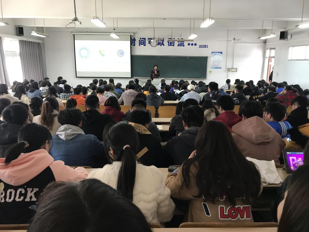 会议结束后,薛亚萍院长在文昌院103教室为学生们做了学生项目专场宣讲会,200名同学参加了此次宣讲会。会上,薛院长从学校概况、申请专业、收费标准、项目优势、报名方式等方面向学生们详细的讲解了关于项目的具体情况。在场的学生反响热烈,踊跃提问,薛院长耐心细致地回答了同学们的问题并赠送纪念物。