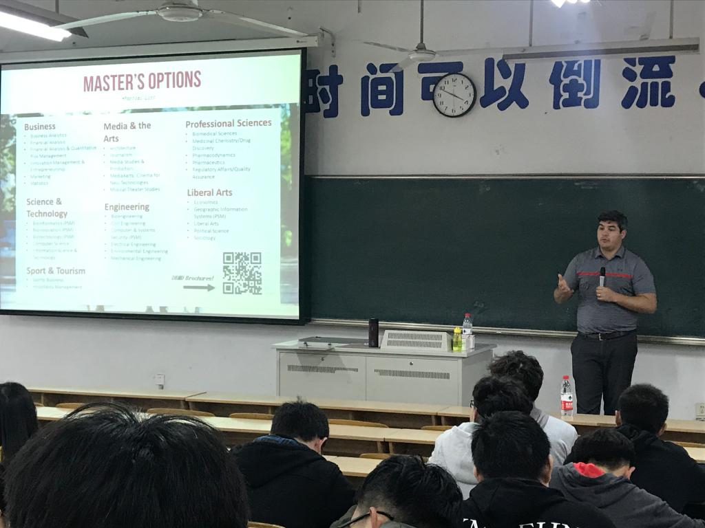 3月20日下午,开云邀请美国天普大学全球项目主管Owen Jones来校宣讲,全校共160余名学生参加。宣讲会由发展合作处张务一老师主持。