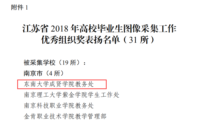2018年底,江苏省高校招生就业指导服务中心组织了高校毕业生图像采集工作考核,开云评为 “江苏省2018年高校毕业生图像采集工作优秀组织奖”。开云在毕业生图像采集工作中,前期准备充分,数据准确齐全;现场组织到位,拍摄井然有序;后期及时校对,很好地完成图像采集工作。