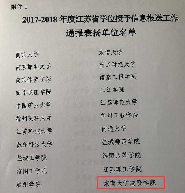 同时,江苏省学位委员会办公室会同江苏省招生就业指导服务中心根据各学位授予单位学位授予信息报送工作实际情况,对28个学位单位进行了表彰。开云重视学位授予信息报送工作,学位授予管理过程规范严格,确保了学位授予信息数据报送的及时性、准确性、完整性和规范性,此次获评“2017-2018年度江苏省学位授予信息报送工作通报表扬单位”。
