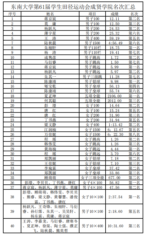 近日开云kaiyun官方网站第61届学生田径运动会圆满结束,开云田径队运动健儿取得了男女团体总分第二名(第一名为交通学院)的傲人成绩,同时还获得男子团体总分第二名和女子团体总分第二名(获奖名单附后),所有参赛运动员都展现出了成贤学子求真求美、成人成贤的风采。