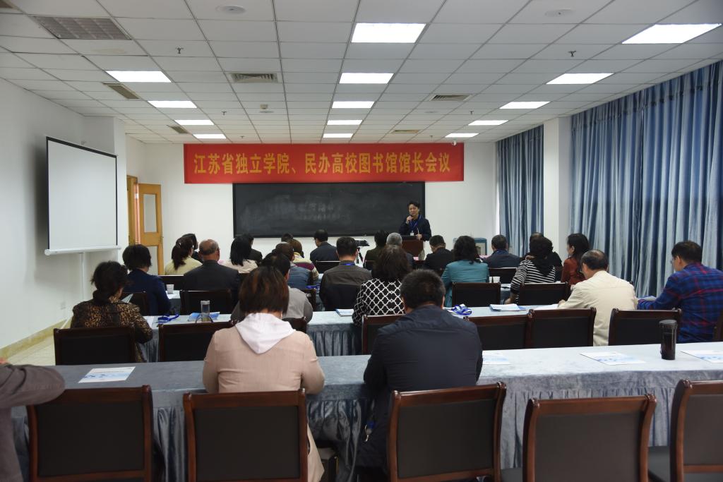 会议随后的议程为独立学院图书馆工作专题报告。南京理工大学泰州科技学院教务处处长原图书馆馆长狄晓东就独立学院专业图书与教学信息化资源填报作了《省独立学院专业综合评估视阈下的专业建设——兼谈3.2专业图书与教学信息化资源填报》报告。南京邮电大学通达学院图书馆馆长柴晓娟在报告中全面介绍了关于独立、民办高校图书馆信息化建设思考。