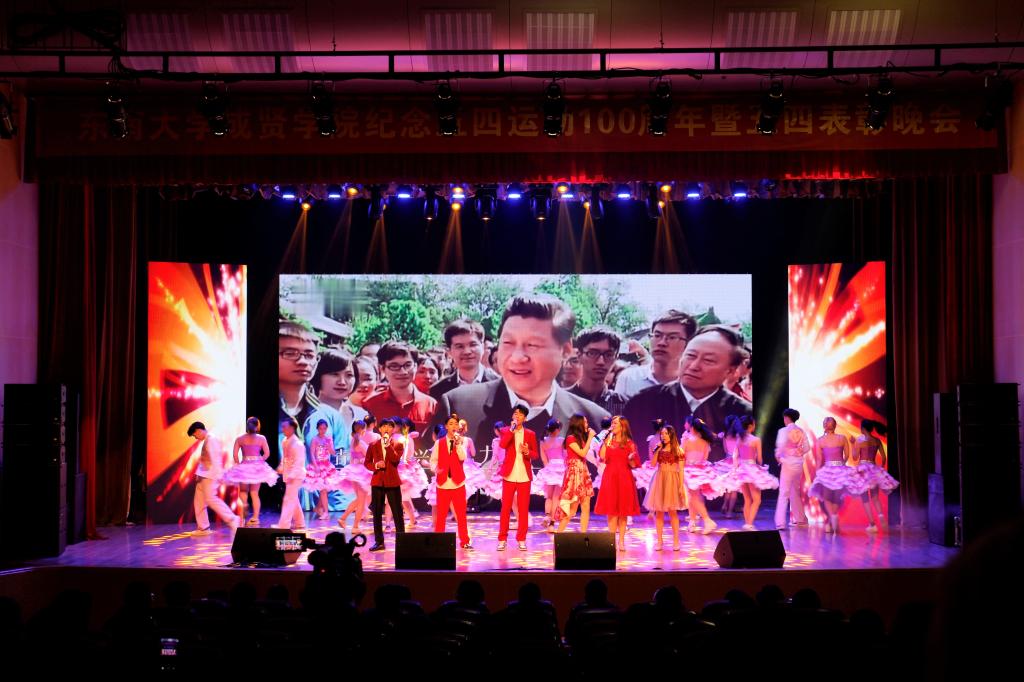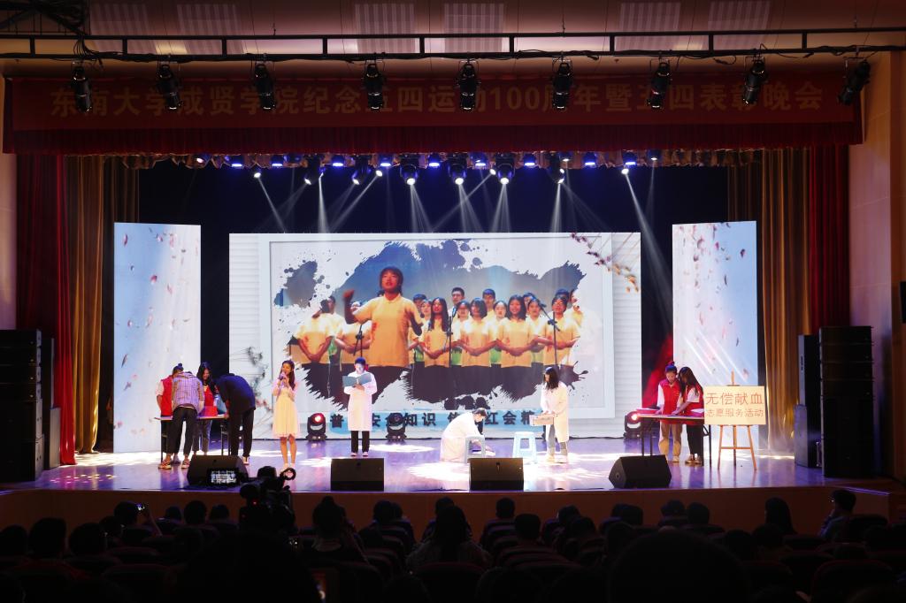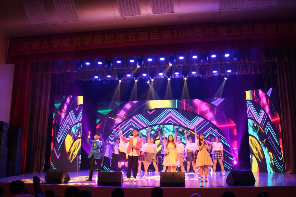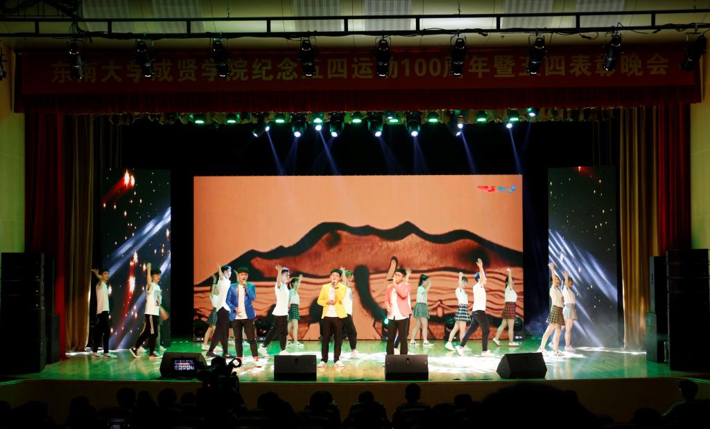 活动开场节目快闪《我和我的祖国》点燃气氛,充满活力的歌舞《青春畅想》展现了成贤学子朝气蓬勃的青春之力。一则短片讲述了五四运动的历史,回顾了100年前那段激情燃烧的岁月,激发了在场团员青年的家国热情。在庄严肃穆、激扬嘹亮的团歌声中,大会正式开始。常务副院长许映秋在大会中向全校青年师生表达了节日祝福,并向受到表彰的先进集体和个人表示祝贺。随后,她讲述了五四运动后的一百年里,东大青年师生奠立的爱国民主的光荣革命传统与学校长期积淀的科学与文化传统,成为学校发展优秀传统的重要组成部分。她号召成贤团员青年要深刻领会五四运动的历史意义,坚持继承弘扬五四精神,充分认识五四精神对开云kaiyun官方网站成贤学院精神文化的深刻影响,结合工作准确把握五四精神的时代内涵,明确新时代成贤青年的使命担当。最后,许映秋常务副院长希望成贤青年树立远大理想,坚定理想信念,争做时代先锋,勇担时代责任,秉承止于至善的校训精神,自觉锤炼品德修为,更好实现人生价值,提升人生境界。