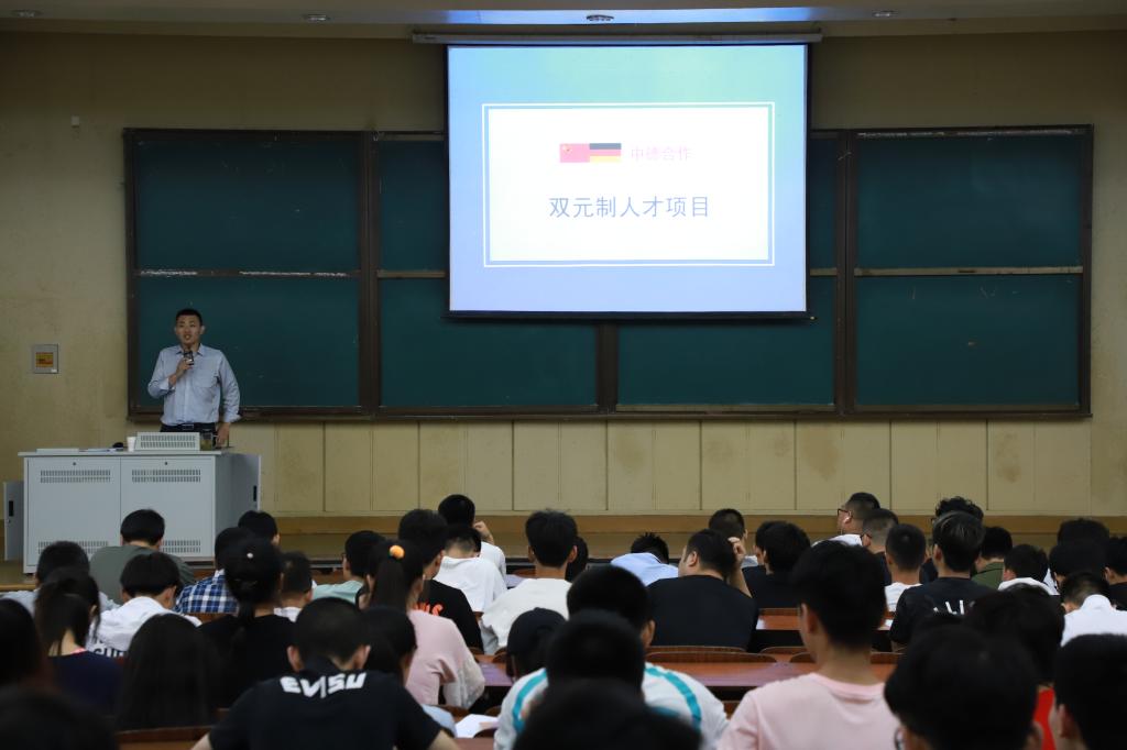 5月14日,机械与电气工程学院举办了“2019年中德合作双元制培养项目”宣讲会。2018级全体学生及辅导员参加了此次宣讲会,会议由学院综合办主任李洪全主持。