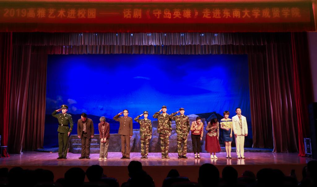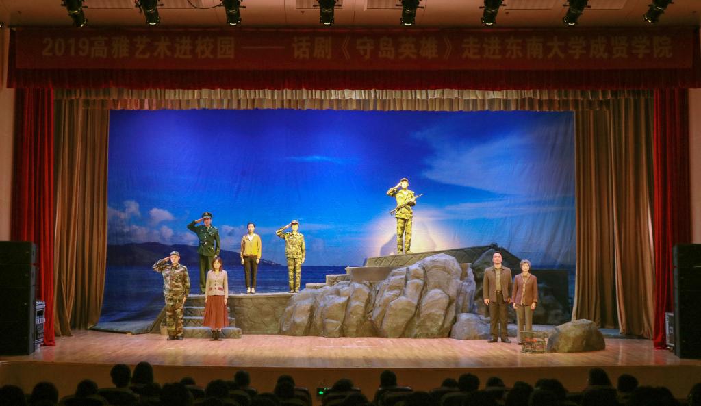 本次活动学习主题为“践行核心价值观,建功立业新时代——学习王继才同志先进事迹”,校内由学校党委主办,党政办、组织(人事)部、学工部、工会、团委承办,话剧《守岛英雄》是由省委宣传部指导,江苏省演艺集团话剧院创作演出,根据“时代楷模”王继才、王仕花夫妇驻守开山岛32年的事迹改编,讲述了民兵营长王继才,在妻子王仕花的陪伴下,信守承诺,不负使命,克服无水无电、缺医少药、孤独无助等常人难以想象的困难,与开山岛生死相依的感人故事。
