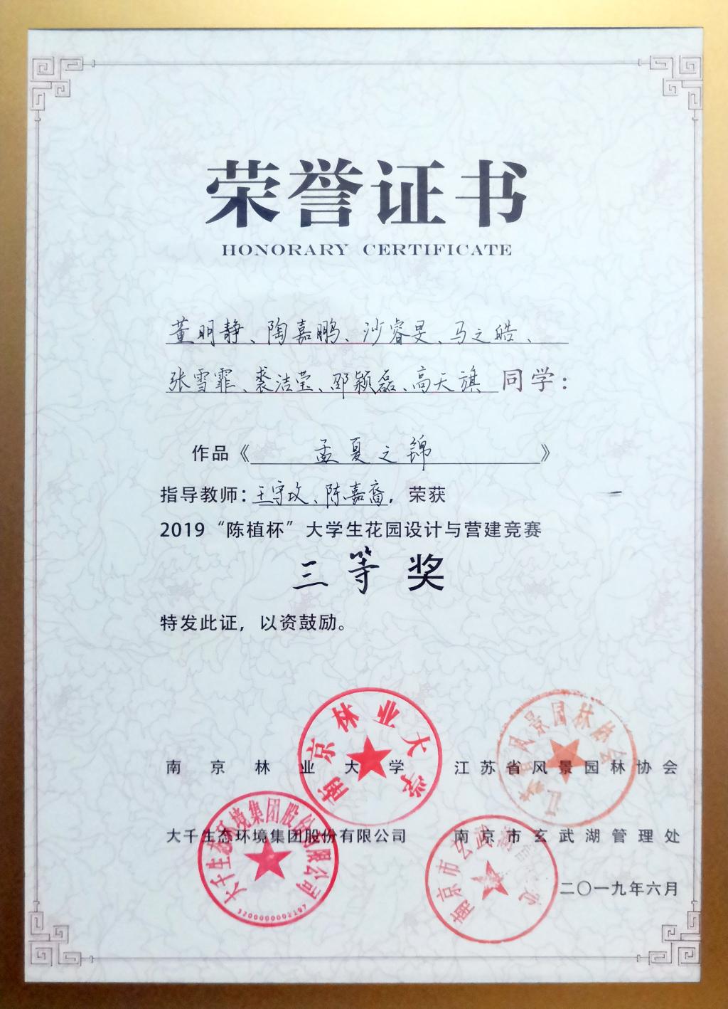 获奖荣誉证书
