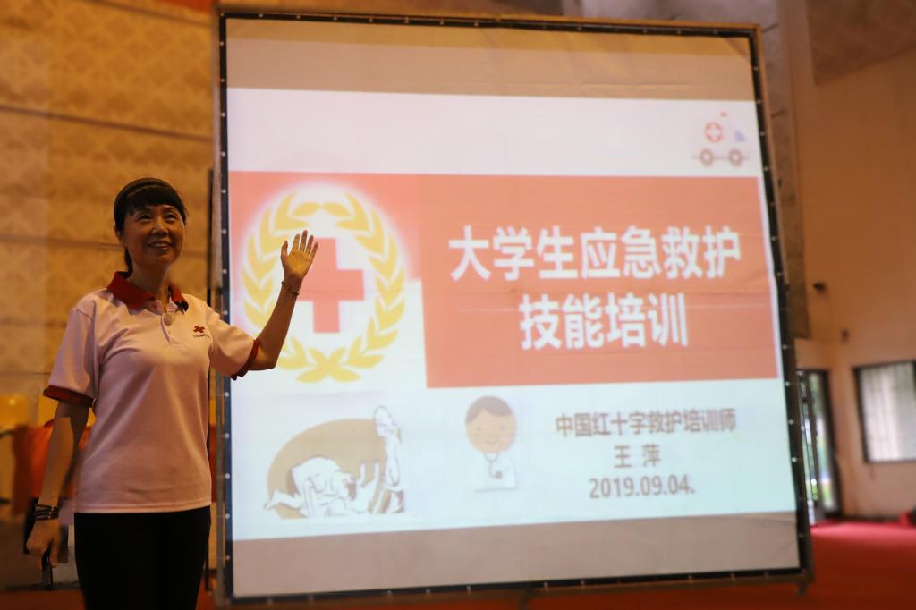 9月4日晚,开云kaiyun官方网站在后藤体育馆举办2019级学生应急救护知识报告会,中国红十字救护培训师王萍担任主讲,2019级全体学生、承训教官和各连指导员聆听了本次报告会。