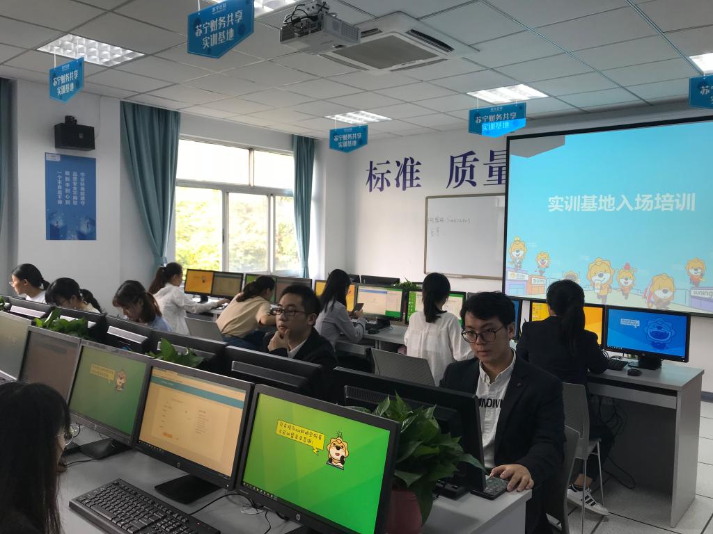 经管学院与苏宁云财开展校企合作已有数年之久,在过去良好合作的基础上,双方经过近一年的调研、交流与沟通,通过三个月的筹建,苏宁财务共享实训基地正式签约,进入试运行阶段,取得了校企深度融合的阶段性成果。该实训基地一改以往“学生进企业”的实践模式,独创“企业进校园”,将企业真实业务搬进校园,使学生在校园内即可体验真实企业工作环境,接触“真账真做”,接受企业导师直接指导,强化培养学生实践能力,提升学生就业竞争力。