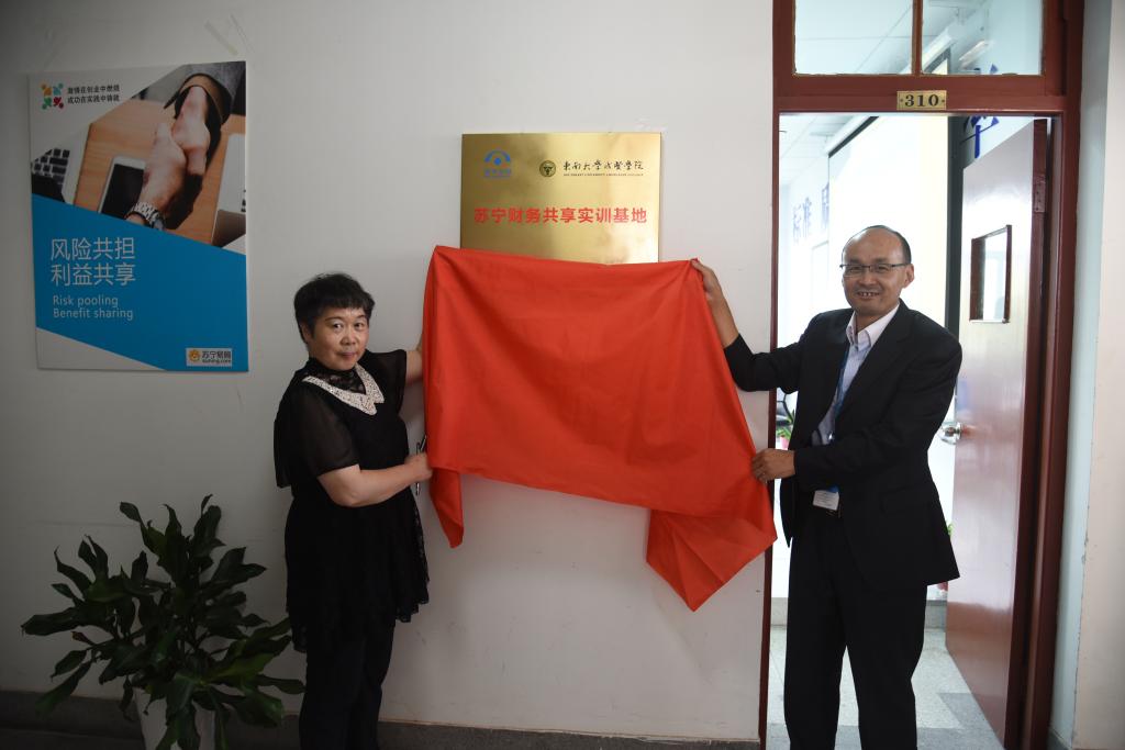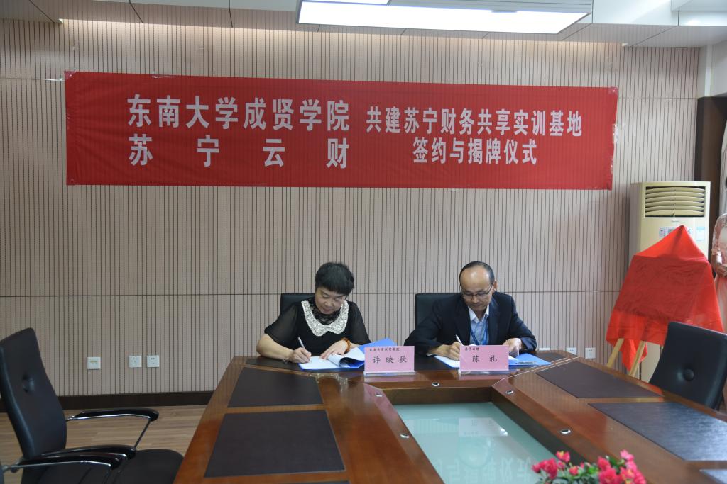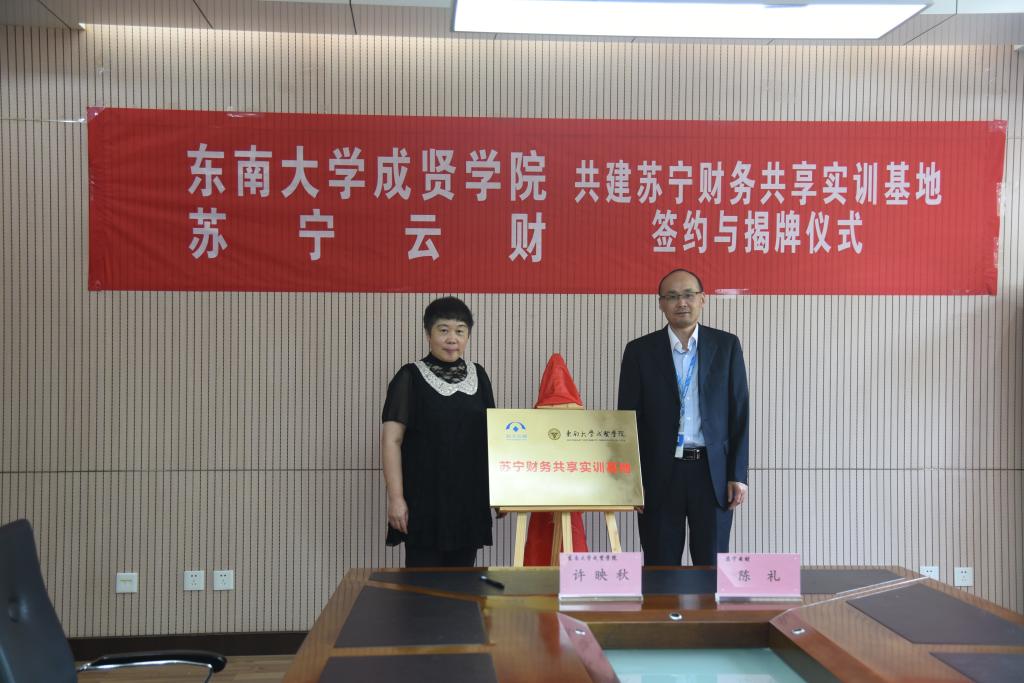 苏宁云财陈礼总经理与许映秋常务副院长随后进行了苏宁财务共享实训基地的签约和揭牌。仪式结束后,双方前往实训基地参观。