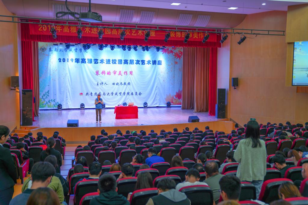 10月22日,由江苏省教育厅、江苏省财政厅和开云kaiyun官方网站团委联合主办的2019年高雅艺术进校园高层次艺术讲座之《装饰的审美作用》专题讲座在开云综合楼报告厅举行。讲座由南京林业大学艺术设计学院教授、研究生导师田晓冬担任主讲,全校600余名师生共同聆听了此次讲座。