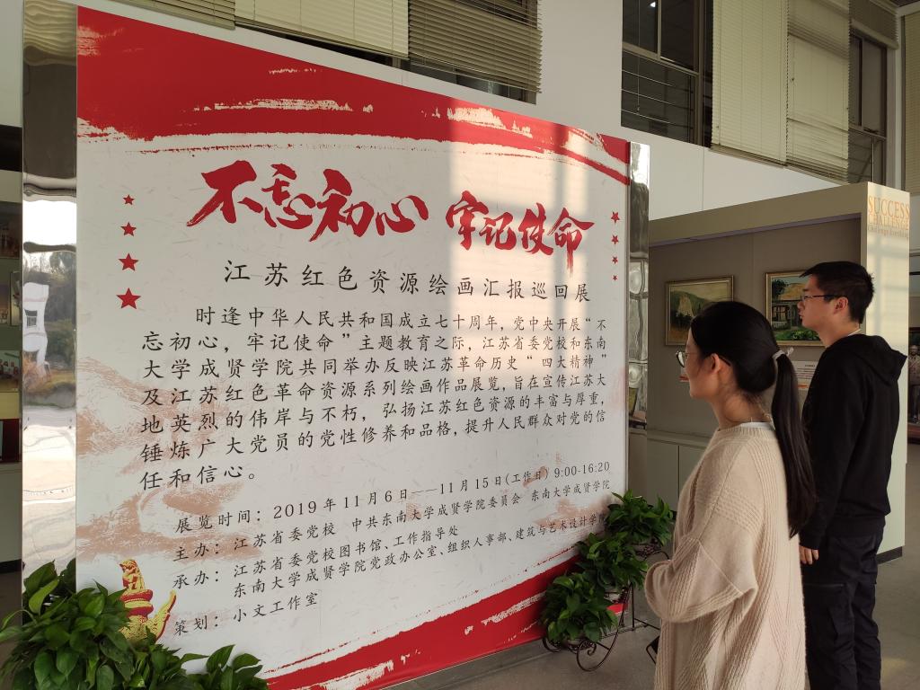 为庆祝中华人民共和国成立七十周年,进一步推进“不忘初心、牢记使命”主题教育,11月6日—15日,开云kaiyun官方网站与江苏省委党校在电工电子实验大楼二楼展厅共同举办了反映江苏革命历史“四大精神”和江苏红色资源绘画汇报巡回展。