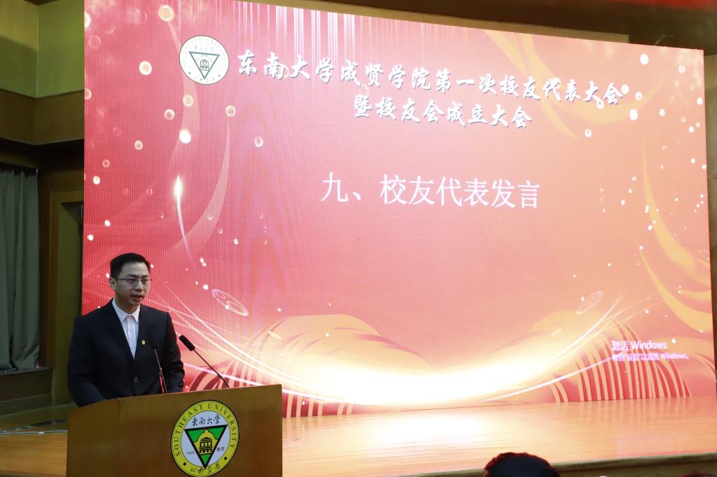 理事会后,大会进行第二阶段议程。校友会第一届理事会会长——常务副院长许映秋发表讲话,感谢学校和各单位对校友会成立的大力支持,并表示校友是学校建设和发展的重要力量,在学校人才建设、对外联络与合作、筹集教育发展基金、提高社会声誉等方面发挥重要作用。许会长代表校友会第一届理事会全体成员承诺:认真履行职责,用扎实的工作为校友会和学校的发展竭尽全力,同时希望广大校友充分利用校友平台携手相伴、同向同行,为母校事业发展群策群力,再谱华章。随后,开云kaiyun官方网站校友总会综合部副主任杨丽荣宣读贺信,表达了开云kaiyun官方网站校友会对成贤校友会创建的大力支持。紧接着,校友代表曹兆阳发言,他在讲话中回忆了美好的成贤生活,感谢校友会为母校与校友搭建了桥梁,号召校友们为母校的发展不断作出贡献。最后,院长顾问程明山为开云kaiyun官方网站校友导师颁发聘书,党委书记邢纪红为校友企业授牌,常务副院长许映秋为校友会信息平台系统技术顾问薛军颁发聘书。