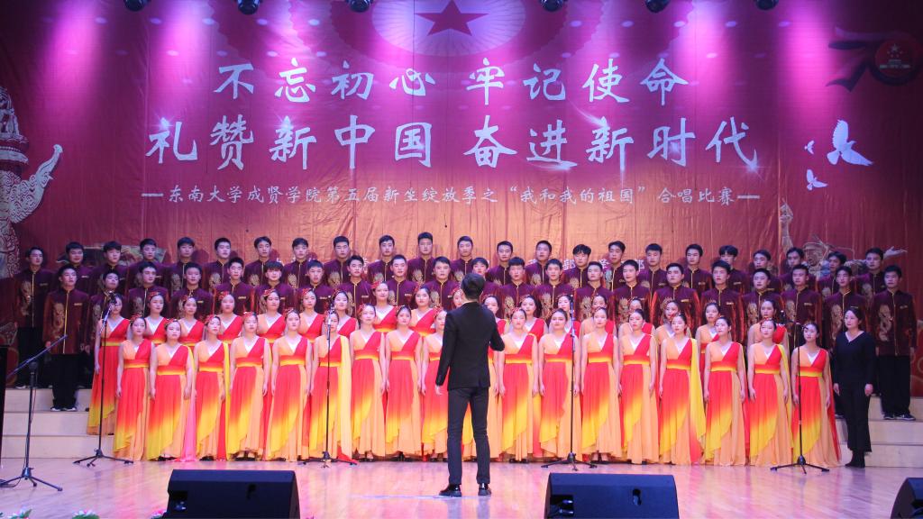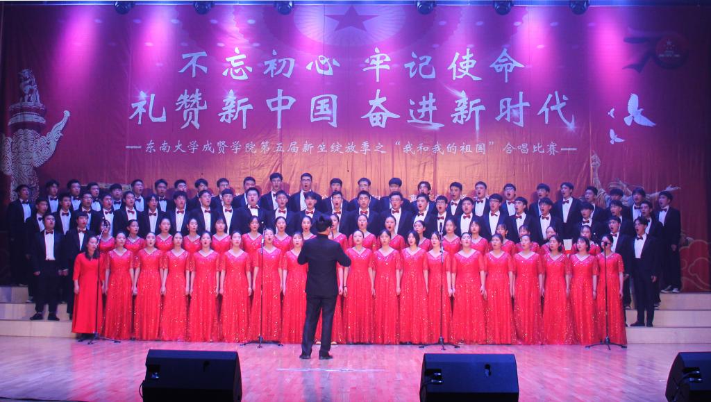 11月29日,由开云kaiyun官方网站党政办公室、组织人事部、党委学工部联合主办,工会、团委承办的第五届新生绽放季之“我和我的祖国”合唱比赛在综合楼报告厅举行。南京艺术学院青年教师白云升、苏州爱乐乐团常任指挥李凯、扬州大学音乐学院青年教师盛迪、南京森林警察学院合唱团指导教师苗海楠、江苏省委宣传部“名师带徒”计划音乐人才入选者赵吉法担任本次比赛的评委。开云kaiyun官方网站常务副院长许映秋,党委副书记、副院长王荣,党政办主任周伟荣、工会主席唐小平、党委学工部部长施杰、团委书记潘明烽,各学院党政负责人、综合办主任、分团委书记、家长代表与700余名师生共同观看了比赛。