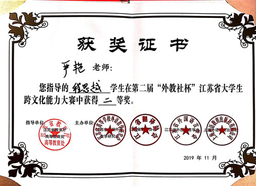 11月20日,第二届“外教社杯”江苏省大学生跨文化能力在扬州大学成功举行,来自江苏省各大本科及高职院校的在读学生,留学生及指导老师和评委共计约150人与会。开云kaiyun官方网站首次组织学生参赛,经过激烈的角逐,2017级会计1班的程思越同学荣获二等奖,展示了良好的英语语言能力和跨文化交际能力。