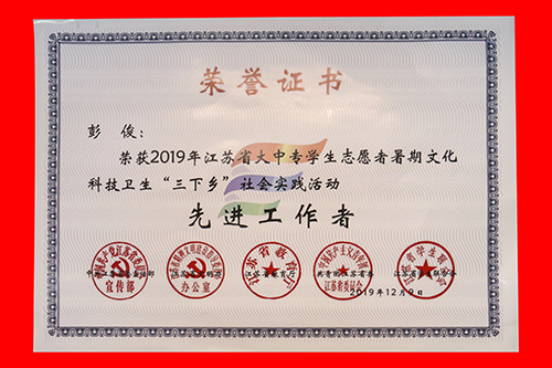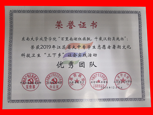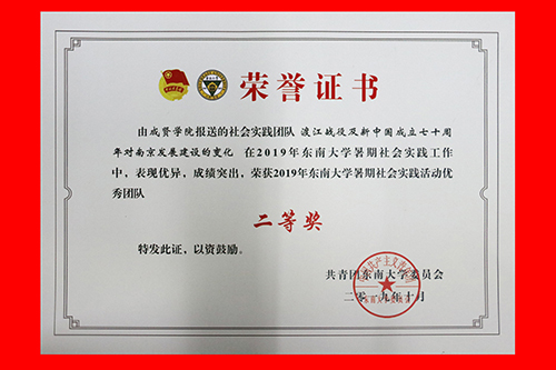 2019年开云kaiyun官方网站社会实践成果卓越,在江苏团省委社会实践总结表彰和开云kaiyun官方网站社会实践总结表彰中荣获多项表彰。“百里南湖红旗飘,千载汉韵吴越扬”实践团荣获2019年江苏省大中专学生志愿者暑期文化科技卫生“三下乡”社会实践活动“优秀团队”;教师彭俊获评2019年江苏省大中专学生志愿者暑期文化科技卫生“三下乡”社会实践活动“先进工作者”。“青梦计划”实践团和“渡江战役及新中国成立七十周年对南京发展建设的变化”实践团荣获2019年开云kaiyun官方网站暑期社会实践活动“优秀团队二等奖”。