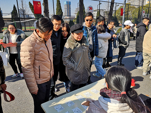 活动现场2000多灯谜高高悬挂、五彩斑斓,师生现场驻足观赏、积极猜谜。游园会现场分为表演、展览和互动三个区域。表演区域,各学生艺术团、跆拳道社、啦啦队精心准备的节目轮番上演,现场不断发出热烈的掌声和尖叫声;展览区域,书法社的书法体验、手工社的手工制作、汉服社的汉服讲解、刀画社的作品展示等引得人头攒动。互动区域,投壶、套圈等传统游戏,糖画、捏泥人等传统民间文化活动,吸引了众多师生的积极参与,让师生在游园中体会活动乐趣、了解传统文化,活动现场气氛热烈、其乐融融。