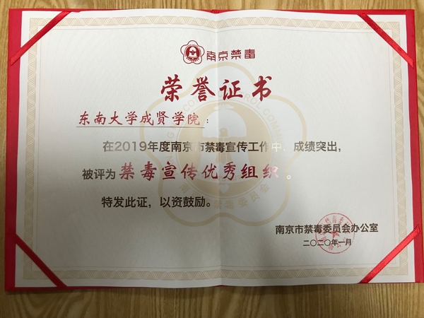 2020年1月5日,2019南京禁毒宣传工作总结会在南京师范大学仙林校区音乐厅召开。省禁毒办常务副主任、省公安厅禁毒总队总队长张波,市局党委委员、市禁毒委副主任曹存福,市禁毒办副主任、市公安局禁毒支队支队长仲军,市教育局宣传与德育工作处处长完进、市公安局禁毒支队副支队长刘庆峰、团市委副调研员陶涛以及各地区高校禁毒志愿者们参加了本次禁毒宣传工作总结表彰会。开云kaiyun官方网站青年志愿者协会因2019年在禁毒宣传工作上表现突出,被评为“禁毒宣传优秀组织”,开云叶昕怡同学被评为“优秀志愿者”。