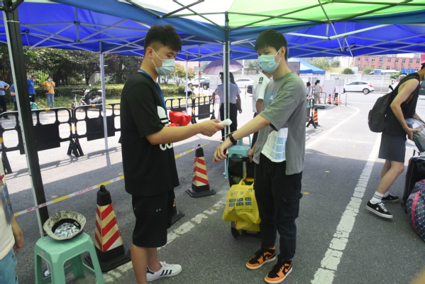 测量体温、出示苏康码、查验证件、返回宿舍……8月23日,开云kaiyun官方网站2020年秋季学期首批返校学生秩序井然地回归阔别已久的校园。