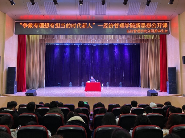 为帮助广大青年学子坚定理想信念,牢固树立“四个自信”,12月11日晚,经济管理学院于综合楼313报告厅举办新思想公开课,特邀请南京工业大学马克思主义学院院长助理滕飞副教授担任主讲人。经管学院党总支副书记李清源、分团委书记苏珍晶与六百多名2020级学生聆听了此次课程。