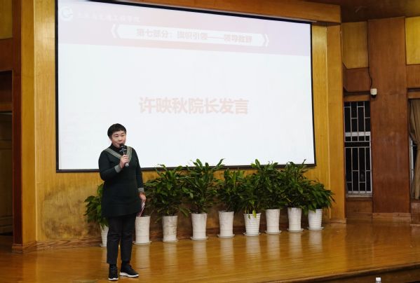 大会在2020级同学们带来的舞蹈《天天向上》中拉开帷幕。本次大会紧密围绕土木与交通工程学院在学生价值引领工作中的七大创新举措即精神引领、专业引领、朋辈引领、德育引领、社会引领、榜样引领和旗帜引领有序开展。通过为2020级新生颁发院徽,聘任新生班级班主任,聘任新生班级班指导,聘任校友导师等环节为新生的成长保驾护航。同时,大会上2020级新生辅导员通过诗朗诵《写给未来的你》表达了对新生的祝福和期许,展现了新时代辅导员“辅学生成长、导学生成才、圆学生梦想”的职责担当。除此之外校企合作单位代表来自江苏扬建集团的陈敏先生也向2020级新生展现了新时代企业的风采和提出了新时代对大学生的要求。在旗帜引领中,常务副院长许映秋为在座的新生指引了成长和发展的方向。许院长指出新时代的青年应该牢记新时代的使命和担当,要有梦想、要立志向,并鼓励广大学生为建设一流应用型大学而努力,为将自己塑造成一流应用型人才而努力。最后,全体师生在激情澎湃的音乐声中,齐唱《我们都是追梦人》将此次大会推向了高潮,展现了土交学子心怀梦想,奋力追梦的精神面貌。