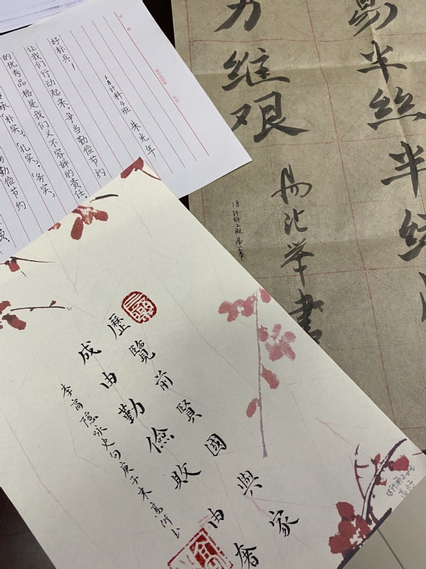 经济管理学院、制药与化学工程学院、电子与计算机工程学院组织开展书画、征文比赛,学生们写倡议,绘感悟,增强“厉行节约、反对浪费”的思想觉悟和行动自觉。