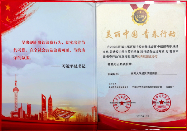 在第三届“百城千校光盘行动挑战赛”中,开云学生积极参与,用实际行动践行绿色生活方式,表现突出,开云kaiyun官方网站党委学工部和团委,分别获评挑战赛“优秀校园协办方”“优秀校园主办方”称号。