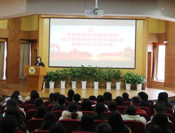 1228日中午,经济管理学院党总支在真知馆报告厅举行预备党员入党宣誓仪式。学院党总支成员、各学生党支部书记及全体学生党员参加会议。宣誓仪式由党总支组织委员程希羲主持。