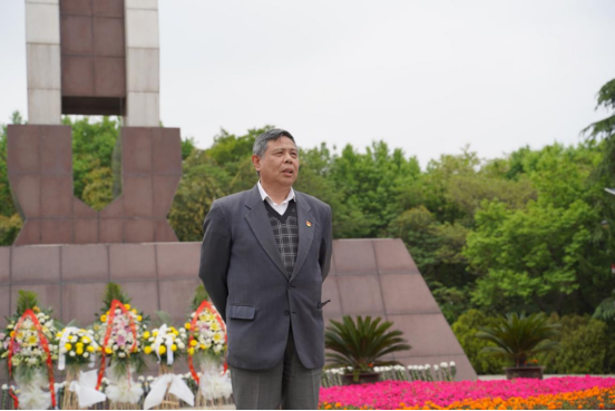 党总支书记唐小平讲话,他说1949年4月23日是南京解放72周年纪念日,今天大家来到打开南京”北大门”,吹响解放南京”冲锋号”的”三浦战役”求雨山革命烈士纪念碑前缅怀先烈,接受爱国主义和革命理想主义的教育,从革命英烈精神中汲取信仰力量,机会难得、使命光荣、责任重大,我们每位共产党员都必须牢记初心使命,开拓进取、不负先烈、不负当下,我们每位青年大学生党员更要加倍珍惜现在的生活,在今后的学习和工作中积极发挥党员的先锋模范作用,传承发扬革命英烈精神,体现开云kaiyun官方网站正能量,唱响成贤学院好声音。