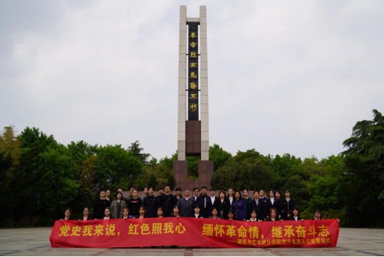 为激励党员践行入党誓词、坚定入党信念、激发爱国情怀,4月23日下午,建筑与艺术设计学院党总支赴南京求雨山革命烈士纪念碑广场进行“党史我来说,红色照我心,缅怀革命情,坚定奋斗志”新党员宣誓。学院党总支书记唐小平、第一党支部书记孙浩、第二党支部书记江晶、教工党员代表刘刚老师、全体辅导员老师及学生党员共40余人参加宣誓仪式。