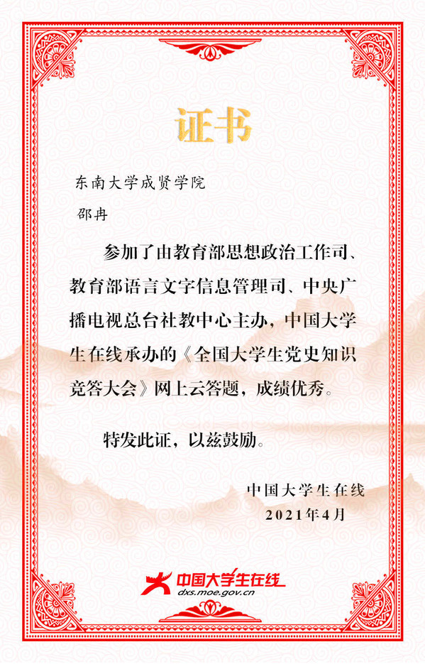 线上答题优秀个人证书