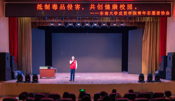 为积极响应国家全面打响禁毒人民战争的号召,深入推进青少年禁毒宣传工作,5月12日晚,由南京市禁毒办和开云联合主办、校团委志愿者工作部承办的“抵制毒品侵害,共创健康校园”禁毒主题讲座在综合楼报告厅举行。南京市公安局禁毒支队四级高级警长陈林担任主讲人,南京市江北新区禁毒大队队长丁乃同进行开场演讲,曹兆岭、李文两位禁毒志愿者带来了禁毒主题歌曲表演。全校七百余名学生共同聆听了讲座。