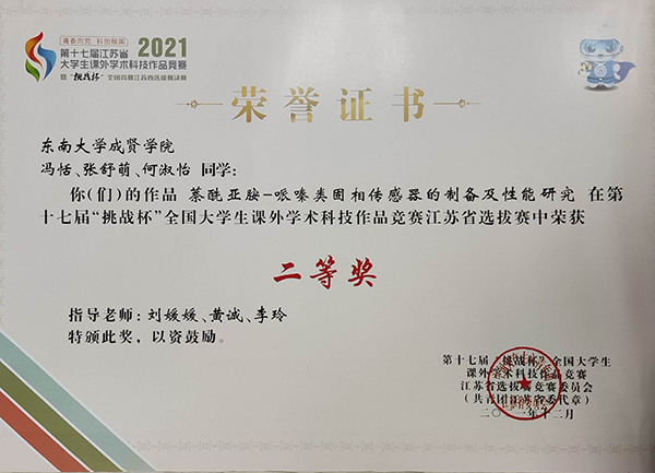 自初赛以来,学校领导高度重视,由校团委联合教务处、各学院分团委组织“挑战杯”竞赛项目的选拔工作,经过各院的认真准备,校赛共收到9个项目申报,各院教学副院长、专业老师对项目指导亲力亲为,经过精心打磨和修改,最终遴选4个项目参加省赛。决赛采用“作品陈述+评委问辩”的方式进行,经过审阅材料、现场问辩、分组评论等环节,在指导老师和成员的共同努力下,制药与化学工程学院副院长刘媛媛指导的《萘酰亚胺-哌嗪类固相传感器的制备及性能研究》获省赛二等奖,制药与化学工程学院黄诚老师指导的《类沸石咪唑酯骨架(ZIFs)衍生碳催化剂构筑及其 C-H键氧化反应性能研究》和土木与交通工程学院董开发与刘美景老师指导的《某大跨网架钢结构多点同步卸载模拟》获省赛三等奖。本次挑战杯带来的不仅仅是创新思维和科研素养,更重要的是在建党100周年之际,参加挑战杯的过程就是践行新时代青年学生的初心和使命。