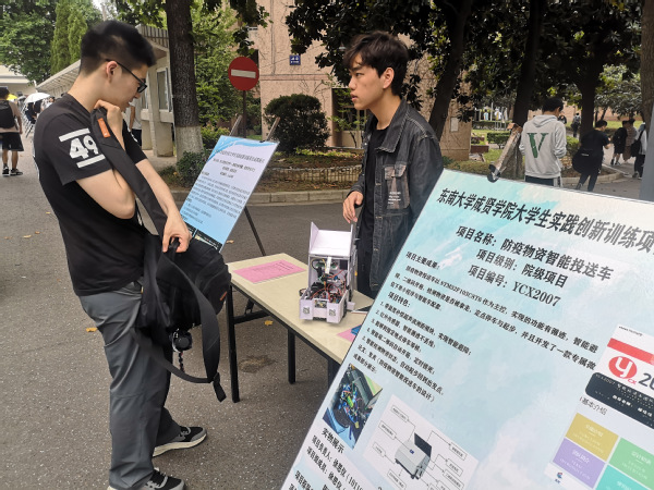 本次活动共遴选68个2020年大学生创新实践训练项目展览,参展的项目组成员在以展板介绍、实物演示等方式进行了展示,对项目创新点、研究思路、研究过程以及成果应用价值等进行了介绍,吸引了学生们的驻足和观看。其中《“New life”智能空气净化器》《大运河江苏段考古遗迹公园遗产展示与保护研究》《芘-邻香兰素类AIE荧光探针的合成及性能研究》等项目以其鲜明的特色、精彩的现场演示给大家留下了深刻的印象。