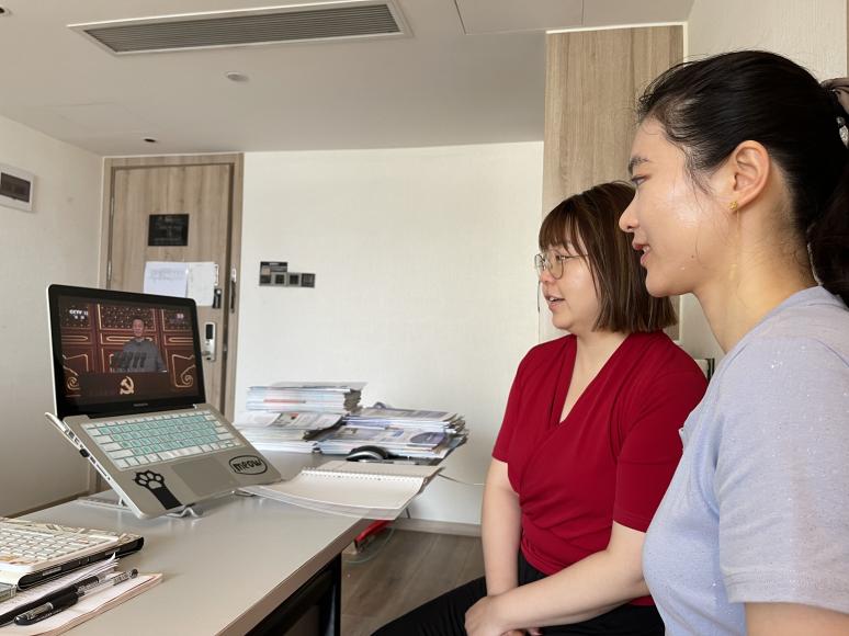 学院领导、在校师生集中观看大会直播