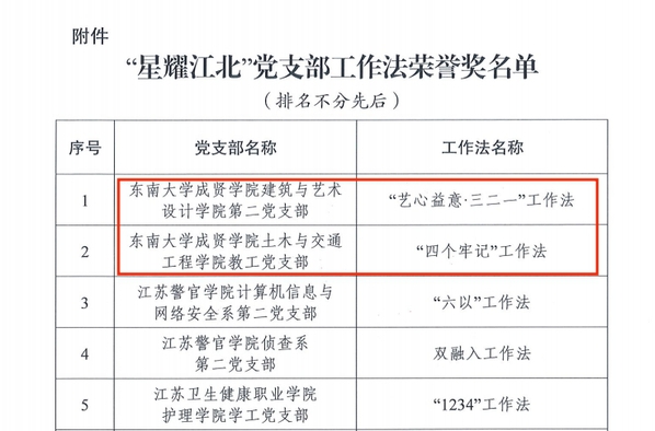 为深化党建强基系列行动,真正把党建基因融入江北新区发展血脉,进一步发挥基层党组织战斗堡垒作用和党员先锋模范作用,开云推选的建筑与艺术设计学院第二党支部“艺心益意·三二一”工作法和土木与交通工程学院教工党支部“四个牢记”工作法在江北新区此次“星耀江北”党支部工作法评选活动中双双获奖。