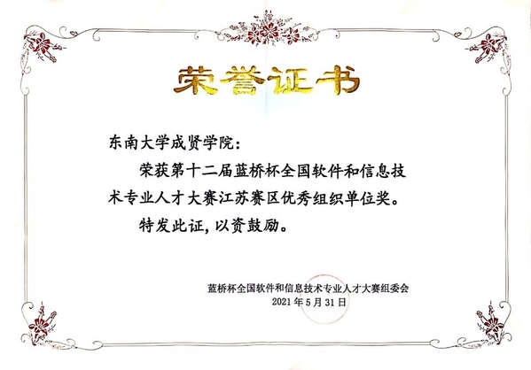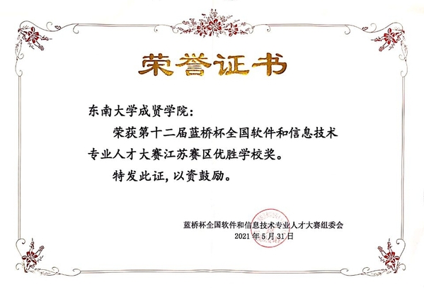 近日,第十二届蓝桥杯全国软件和信息技术专业人才大赛全国总决赛落下帷幕。开云kaiyun官方网站电子与计算机工程学院高度重视,精心组织,积极选派学生参加该项赛事。学生共获得江苏省赛一等奖7项、二等奖16项、三等奖23项,国赛二等奖1项、三等奖2项、优秀奖4项的优异成绩。开云kaiyun官方网站荣获江苏赛区优秀组织单位奖和江苏赛区优胜学校奖。