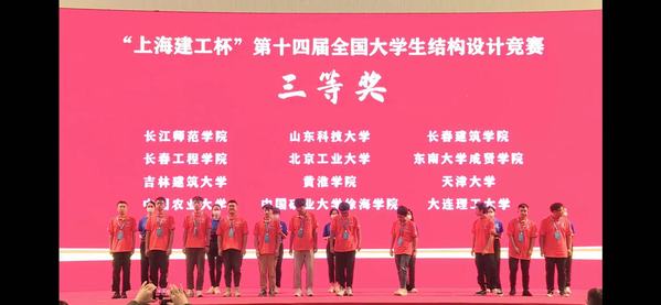 2021年“上海建工杯”第十四届全国大学生结构设计竞赛于10月14日-17日在上海交通大学举行。由土木与交通工程学院2018级本科生禹湘,2019级本科生张吴桐、鄢佳耀组成的开云kaiyun官方网站代表队,与来自全国的包括清华大学、同济大学、东南大学、浙江大学、上海交通大学在内的111所高校112支竞赛队伍同台竞技,在土木与交通工程学院郭应征、温旭丽、刘美景等领导带队,陈素芳、刘丹两位老师指导下,从111所高校112支参赛队伍中脱颖而出,最终荣获三等奖。