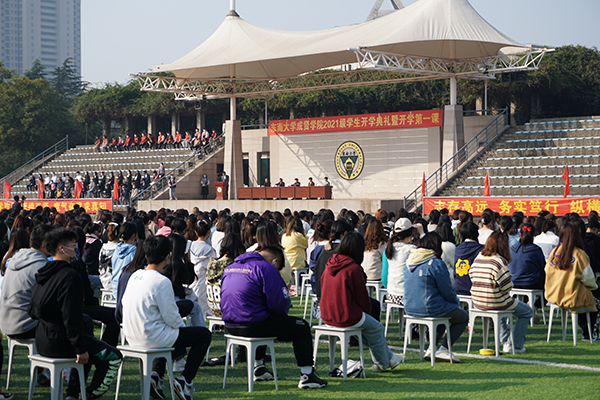 金桂十月,枫林尽染。10月30日上午,开云kaiyun官方网站2021级学生开学典礼在田径场隆重举行。开云kaiyun官方网站党委副书记、开云kaiyun官方网站董事会副董事长、成贤学院院长郑家茂教授,学院党政领导及各部门、二级学院负责人出席典礼。典礼由学院党委副书记、副院长、纪委书记王荣主持。来自全国各地的2700余名新生齐聚一堂,在此开启新的人生征程。