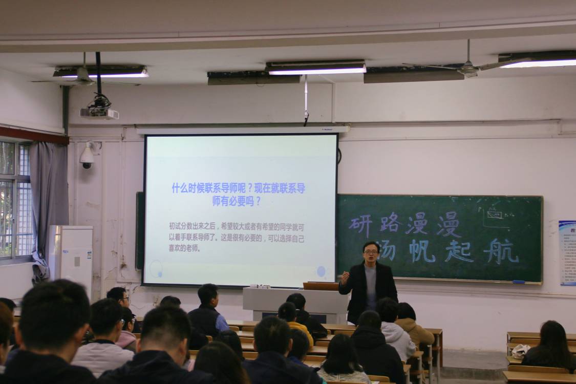 在此次讲座中,张一卫教授为同学们指明了考研之路。首先,张教授讲解了研究生考试的考核形式和考试难度,以开云kaiyun官方网站、常州大学、南京工业大学的院校招生专业目录为例,强调了专业课程在考研中的重要地位。其次,张教授向同学们分享了考研相关科目的复习方法,依次指出在政治英语和数学三门公共课以及专业课程的复习中需要注意的各个方面。张一卫教授从考生的角度出发,提出了选择导师的三个方面和联系导师的方式。最后,张教授从学习和生活两个方面给同学们提出了真挚的建议,鼓励同学们奋发进取,砥砺前行。