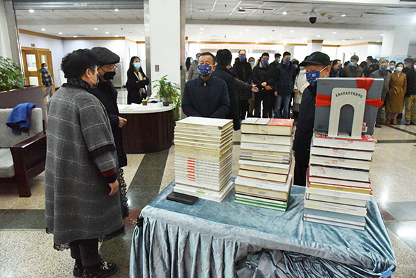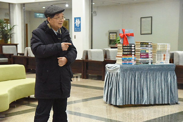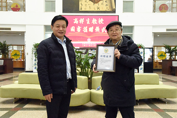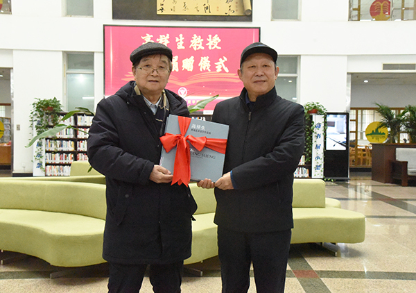 程明山院长顾问代表学校接收高祥生教授图书捐赠。