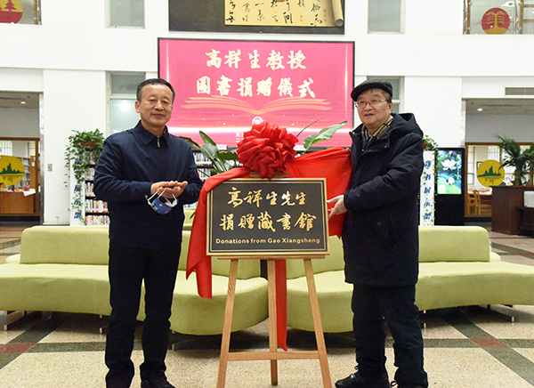 郑家茂书记与高祥生教授共同为“高祥生先生捐赠藏书馆”揭牌。